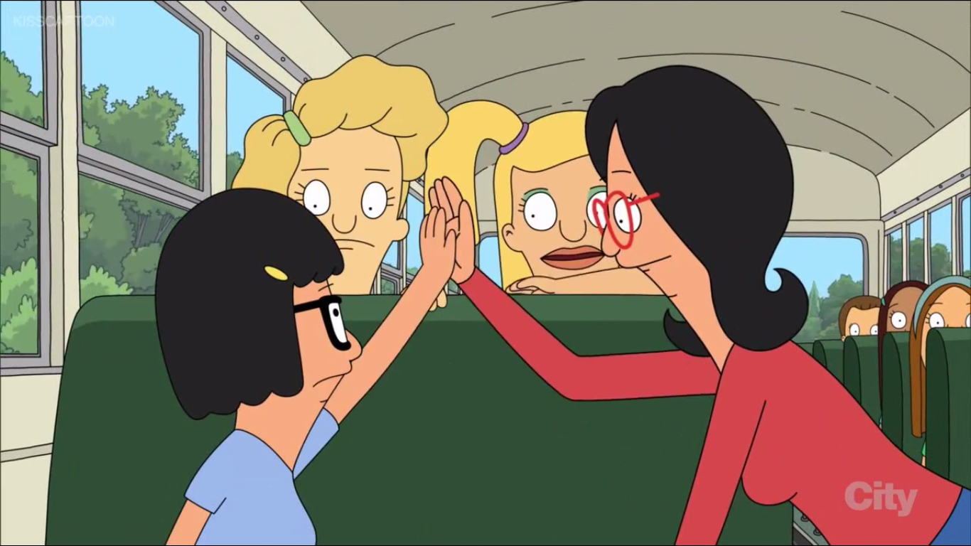 Okay, so it’s an all-girl weekend for Tina and Linda when she was chosen to volunteer Tina’s weekend to a heroine conference outside of town. And…beginning to question why Linda is doing this. Why is she volunteering? Yeah…something tells me the school is really getting desperate when it comes to parents volunteering. But, you know that’s not the case. She really wants to hang out with her oldest daughter in a weekend out of town, despite that Tina has to go because it’s a field trip out of town to the hotel where the seminar is being held with a special guest visiting it to do a presentation, or in this case, the Bob’s Burgers equivalent of a Ted Talk, and of course, Tina submitted one of the questions that will be asked during the Q&A. So, it looks like both Linda and Tina have nothing else to lose and head off. Leaving Bob with Gene and Louise for an entire weekend. Yeah…good luck with that Bob. Although, the last time you left Gene and Louise behind by themselves, they were threatened by Logan after an accidental cantaloupe drop. Although, you were high along with Linda over at the accountant’s office…so…yeah. But that was in the past. We’re talking about this episode.